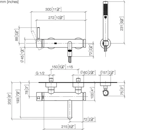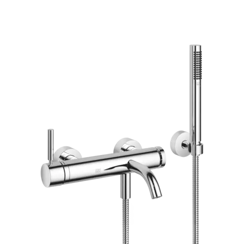 Dornbracht META Wannen-Einhandbatterie für Wandmontage, mit Schlauchbrausegarnitur, Ausladung 202mm