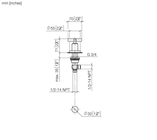 Dornbracht TARA Seitenventil, rechtsschließend, kalt oder warm