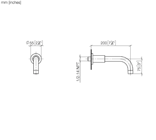 Dornbracht TARA Wannenauslauf für Wandmontage, Ausladung 200mm