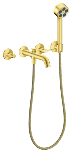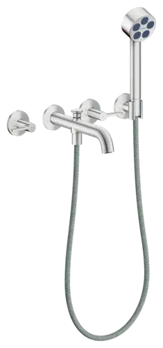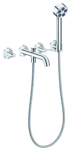 - besteht aus: 3-Loch Wannenarmatur, Handbrause, Brausehalter, Brauseschlauch