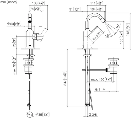 - Armaturenhöhe 218 mm
