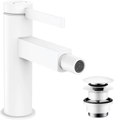 hansgrohe Finoris Einhebel-Bidetmischer mit Push-Open Ablaufgarnitur, Ausladung 129 mm