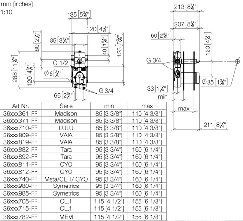 - Stichmaß 120 mm
