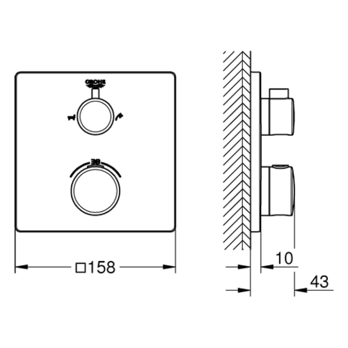 - GROHE SafeStop Plusoptional einsetzbarer Temperaturendanschlag bei 43°C oder 46°C