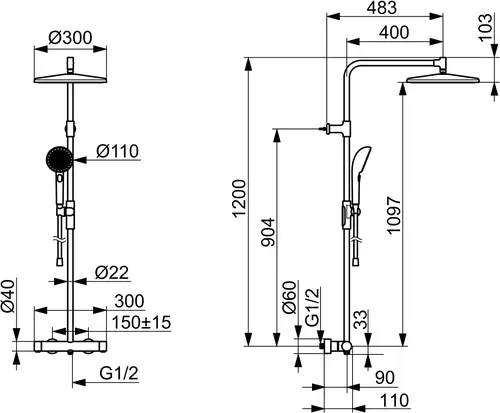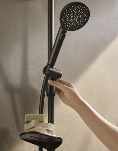 - bestehend aus: Handbrause, Brausestange, Schwenkbare Kopfbrause, In Mittelstellung arretierbar, Verstellbare Brausestangehalterung, Brauseschlauch (1750 mm), Variable Montagemöglichkeit, Schwenkbares Kugelgelenk, Anti-Kalk-Technik, Twist guard, Verdrehschutz für Brauseschlauch