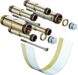 - Thermostatkartusche zur Regelung der Temperatur, Start/ Stop Ventil zur Bedienung der Verbraucher