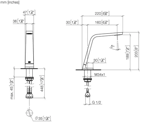 - Armaturenhöhe 204 mm
