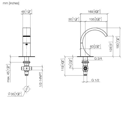 - Armaturenhöhe 180 mm