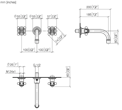 Dornbracht MADISON Waschtisch-Wandbatterie ohne Ablaufgarnitur, Ausladung 190mm