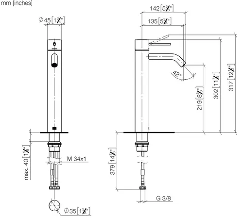 - Armaturenhöhe 301 mm