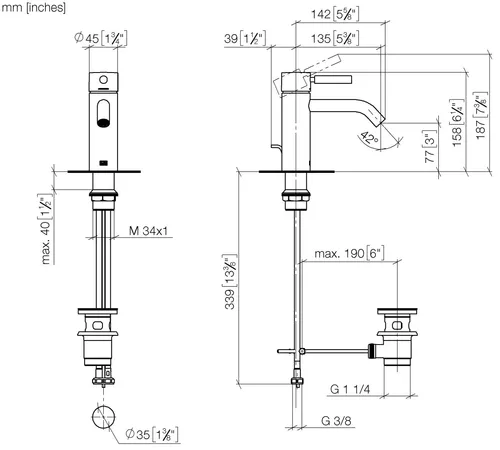 - Armaturenhöhe 158 mm