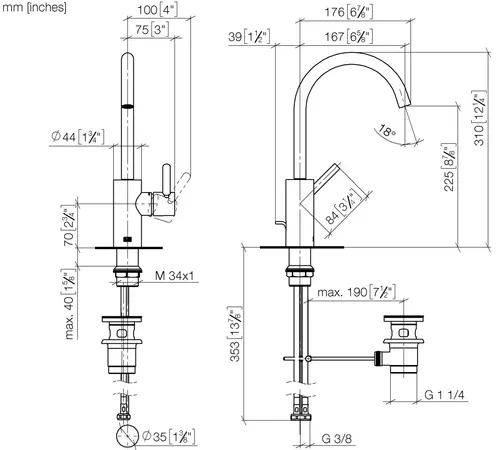 - Armaturenhöhe 310 mm