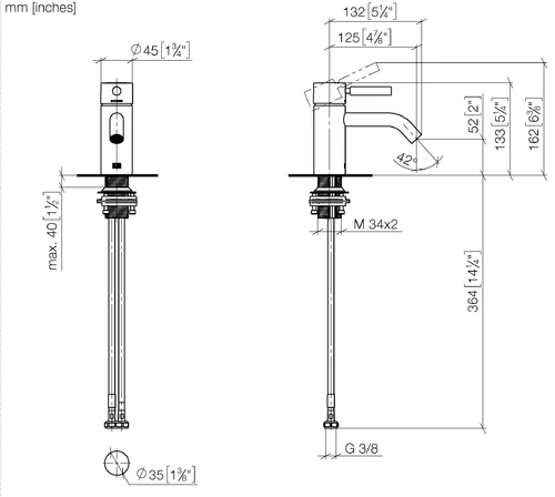 - Armaturenhöhe 133 mm