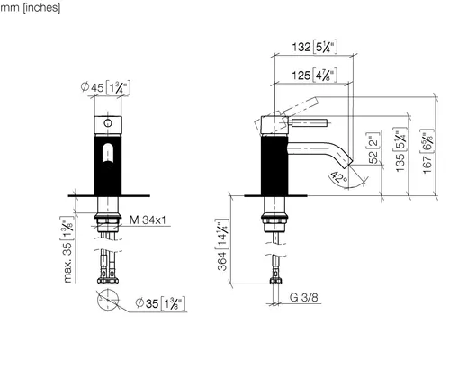 - Armaturenhöhe 135 mm