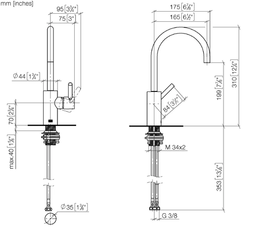 - Armaturenhöhe 310 mm