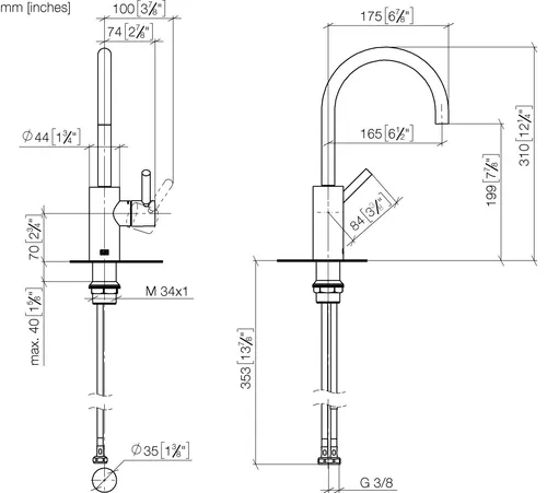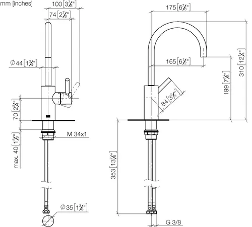 - Armaturenhöhe 310 mm