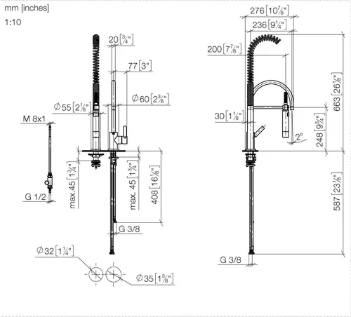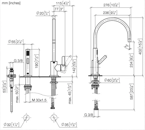 - Höhe bis Luftsprudler 230 mm
