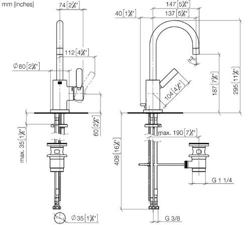 - Armaturenhöhe 295 mm