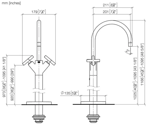 - Höhe bis Luftsprudler 1025 - 1095 mm