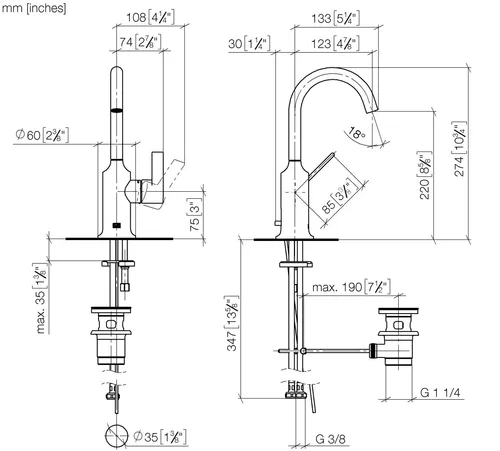 - Armaturenhöhe 274 mm