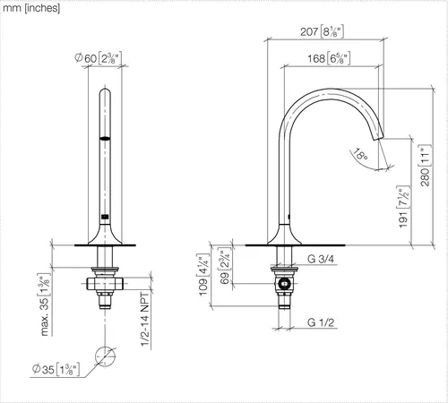 - Armaturenhöhe 280 mm