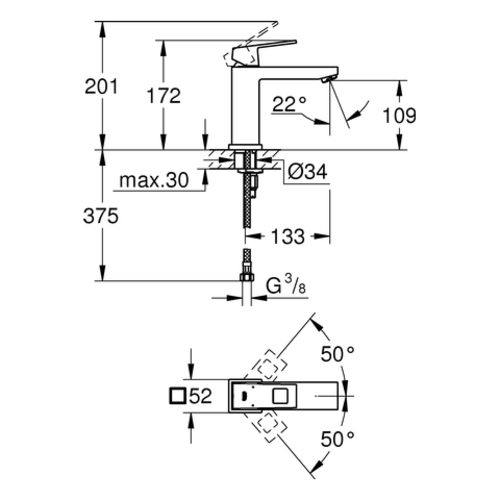 Grohe Eurocube Einhand-Waschtischbatterie, M-Size, Ausladung 133mm, ohne Ablaufgarnitur