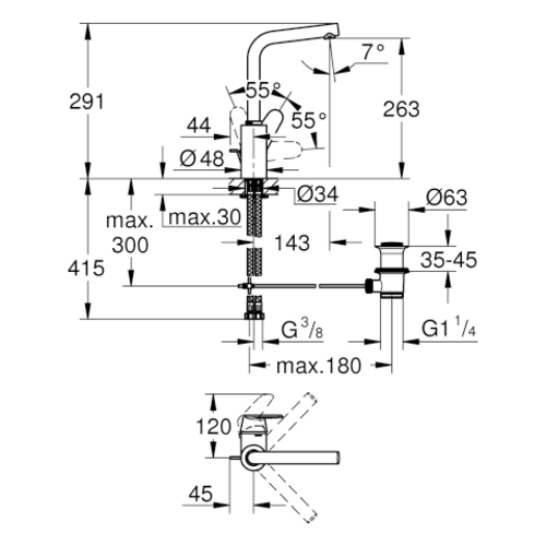 - Armaturenhöhe: 291 mm