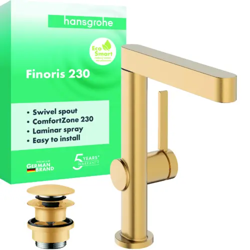 hansgrohe Finoris Einhebel-Waschtischarmatur 230 mit Schwenkauslauf und Push-Open Ablaufgarnitur, Ausladung 178 mm