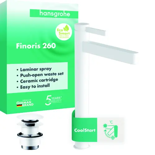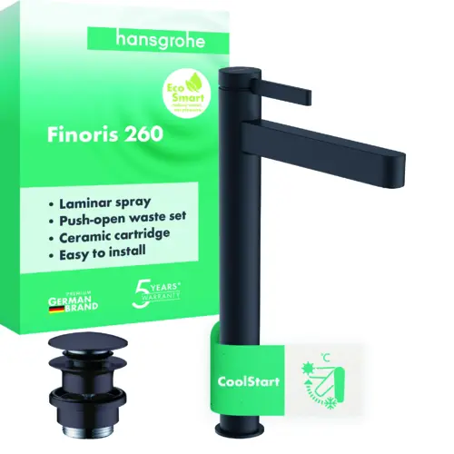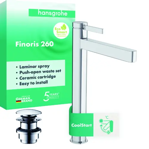 hansgrohe Finoris Einhebel-Waschtischarmatur 260 CoolStart für Aufsatzwaschtische, mit Push-Open Ablaufgarnitur