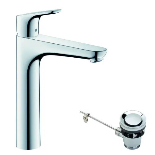 hansgrohe Focus Waschtischmischer, ComfortZone190, Ausladung 159mm, Zugstangen Ablaufgarnitur, chrom