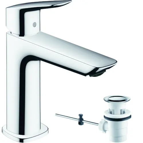 hansgrohe Logis Waschtischmischer Fine, CoolStart, ComfortZone110, Zugstangen Ablaufgarnitur, Ausladung 121mm