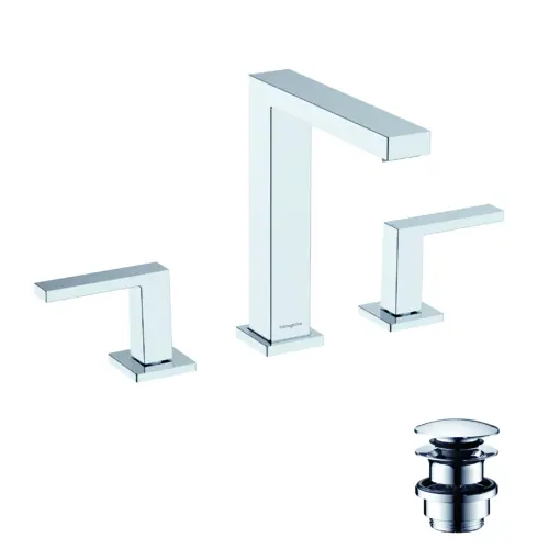 hansgrohe Tecturis E Waschtischarmatur 150, 3-Loch, mit Push-Open Ablaufgarnitur, Ausladung 158mm, EcoSmart+