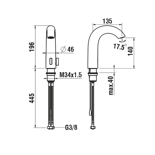 LAUFEN Curvetronic elektronischer Waschtischmischer, Netzbetrieb, Ausladung 135mm