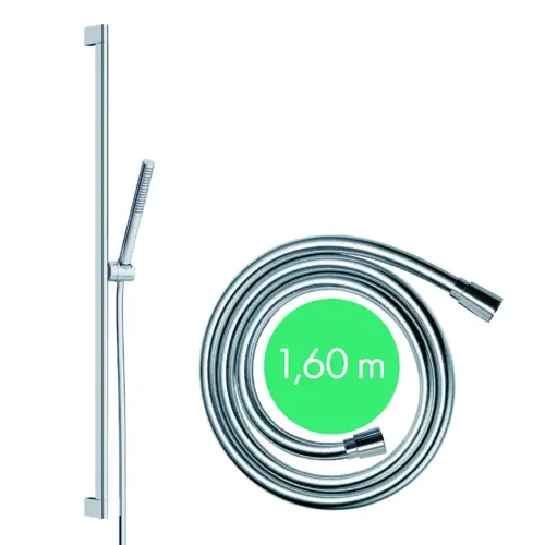 - Mit 1,60 m langem Duschschlauch für große Bewegungsfreiheit. Eine spezielle Befestigung verhindert lästiges Verdrehen