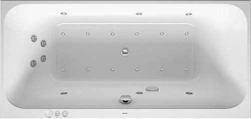Duravit Happy D.2 Whirlwanne, Einbauversion, 2 Rückenschrägen, Gestell, Ab- und Überlaufgarnitur, Combi-System P, 1900x900mm