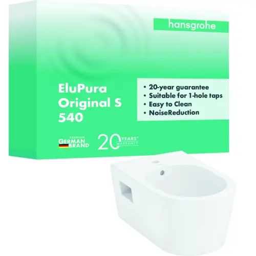 hansgrohe EluPura Original S Wandbidet, 1 Hahnloch, mit Überlauf, 360x540x260mm, weiß