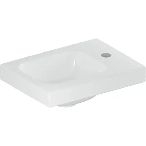 Geberit iCon Light Handwaschbecken, 38 cm x 28 cm, mit Hahnloch rechts, ohne Überlauf, Ablagefläche rechts, 501830