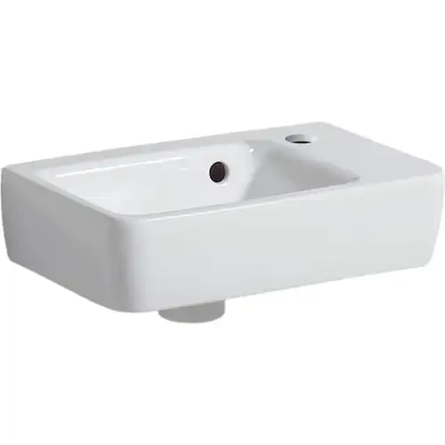 Geberit Renova Plan, Handwaschbecken, verkürzte Ausladung, 36x25 cm, 1 Hahnloch, mit Überlauf, 500382