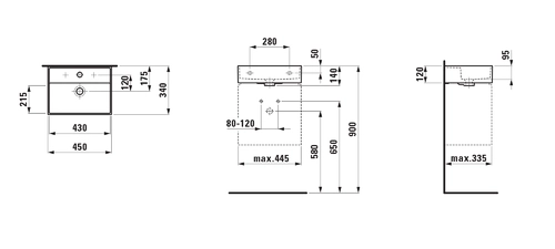 LAUFEN Kartell Handwaschbecken, unterbaufähig, ohne Hahnloch, ohne Überlauf, 450x340mm