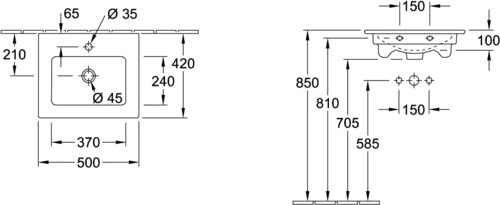 Villeroy & Boch Venticello Handwaschbecken, 1 Hahnloch, mit Überlauf, 500x420mm