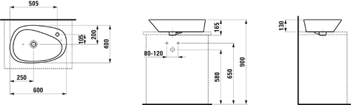 LAUFEN Palomba Waschtisch-Schale, 1 Hahnloch, ohne Überlauf, mit Armaturenbank, Becken links, 600x400mm