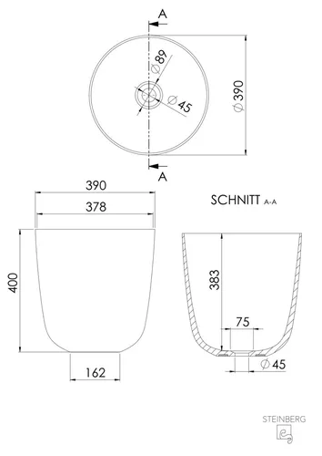 Steinberg Serie 440 Aufsatzwaschtisch, rund, ohne Überlauf, 390x390x400mm, SOLIDSurface