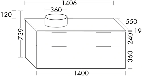 - 1 x Keramik-Aufsatzwaschtisch inklusive Waschtischunterschrank