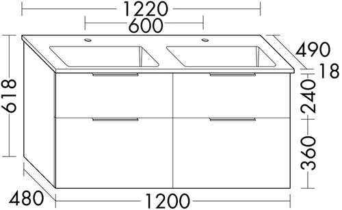 burgbad Eqio Mineralguss-Doppelwaschtisch inklusive Waschtischunterschrank mit 4 Schubladen, Breite 1220mm