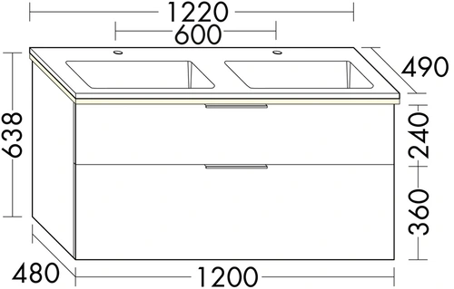 - BxTxH: 1220x490x638 mm