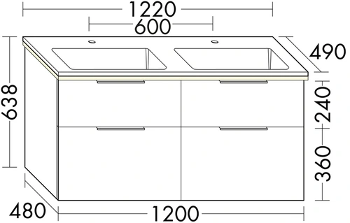 - BxTxH: 1220x490x638 mm