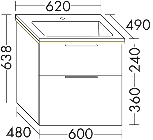 - Beckenmaß: 500x305 mm
