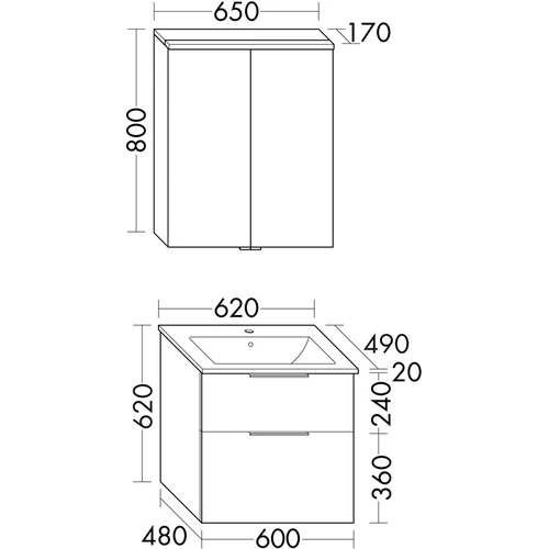 - consisting of mirror cabinet, ceramic washbasin Slim, washbasin vanity unit ( SPGS065 + SHBT062 )