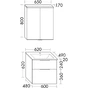 - 1 drawer at the top, 350 mm deep, with siphon cut-out and internal divider