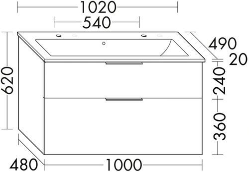 burgbad Eqio Slim Keramik-Waschtisch mit 2 Armaturbohrungen, inklusive Waschtischunterschrank, 1020x490x620mm